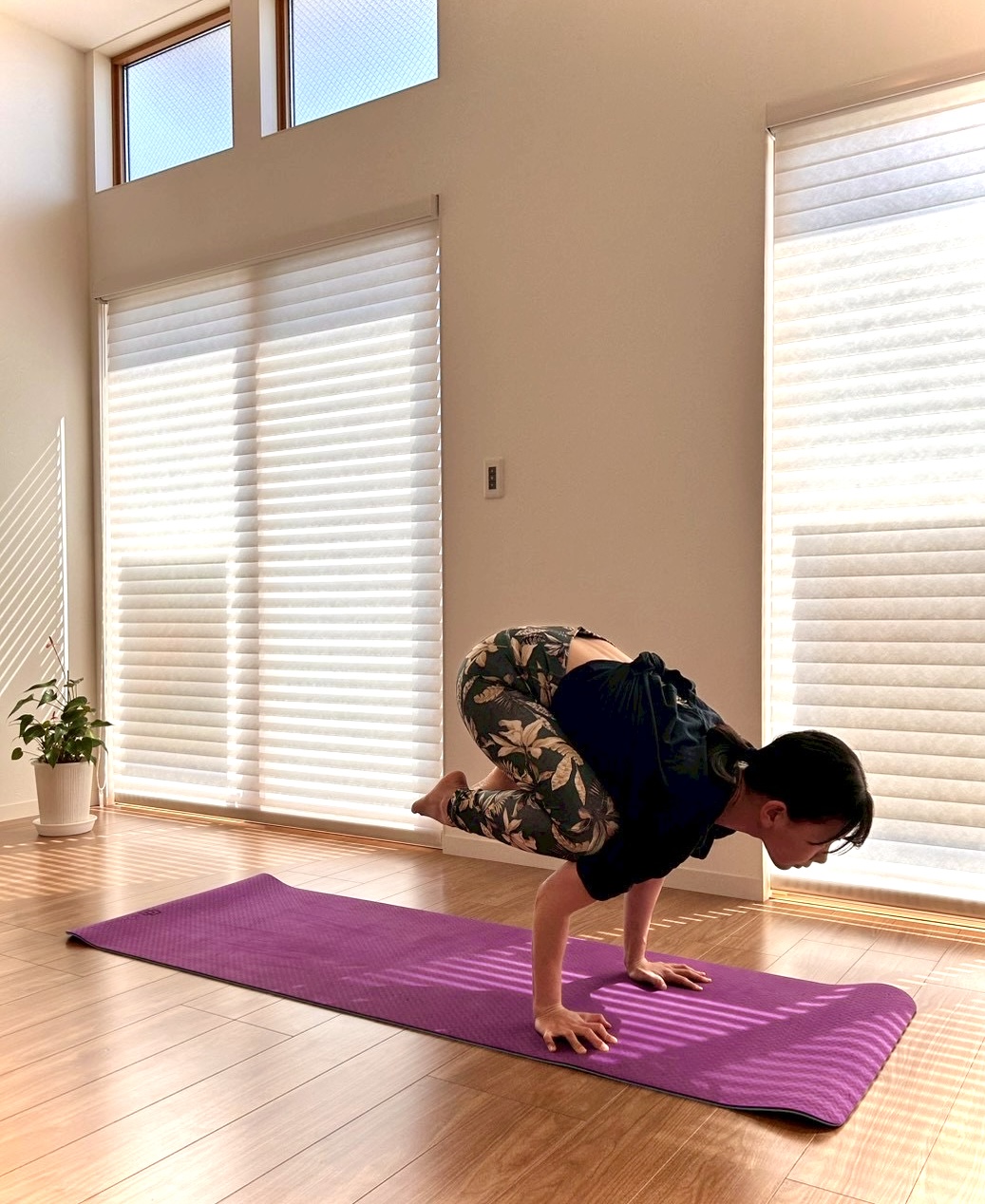 バランスポーズを特に好み、体の軸を鍛えることを毎日の練習に取り入れている。